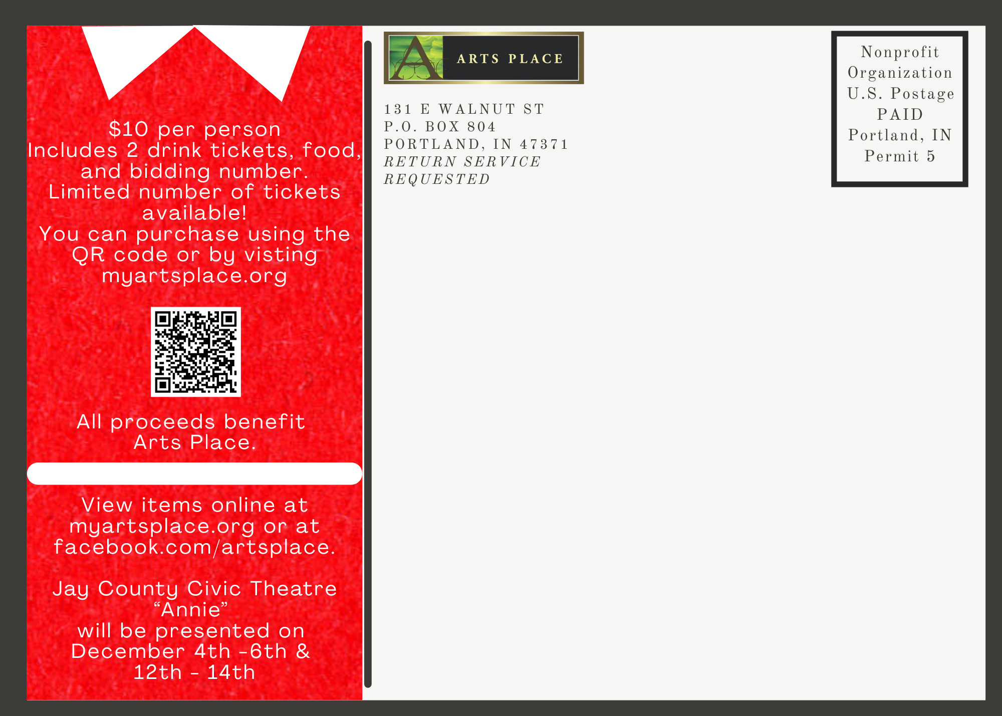Arts Place is committed to providing universal access to all of our activities. Please contact Arts Place to request disability accommodations. Advance notice is necessary to arrange for some accessibility needs.