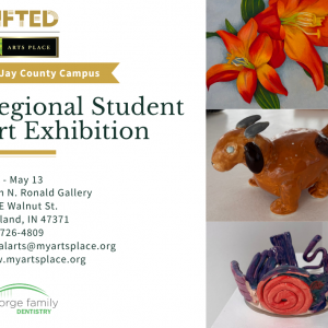 Located at Arts Place Jay County Campus, the Hugh N. Ronald Gallery has displayed a wide variety of exhibits from artists around the country. This includes juried art shows from the community and exhibits of established artists from both near and far. This gallery has seen it all: paintings, sculptures, glass, abstract art, animation, and even interactive displays such as Virtual Reality.